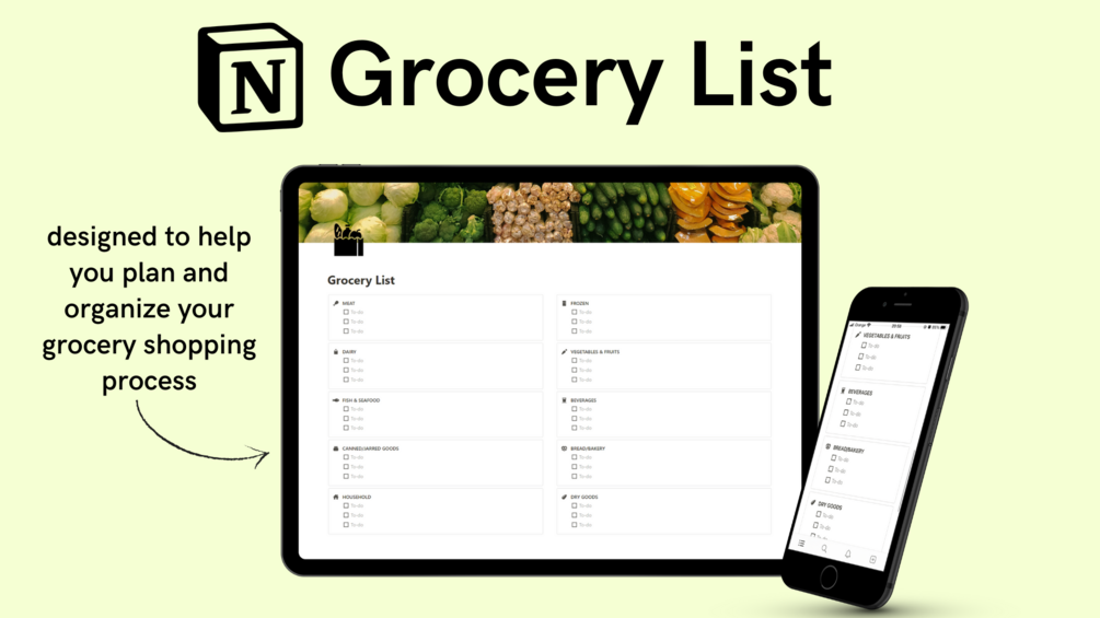This grocery list template in Notion is designed to help you plan and organize your grocery shopping process. With pre-built categories such as frozen, dairy, meats, you can easily add items to your list and categorize them for easy reference when you're at the store. With this template, you'll be able to save time and reduce stress during your grocery shopping trips.